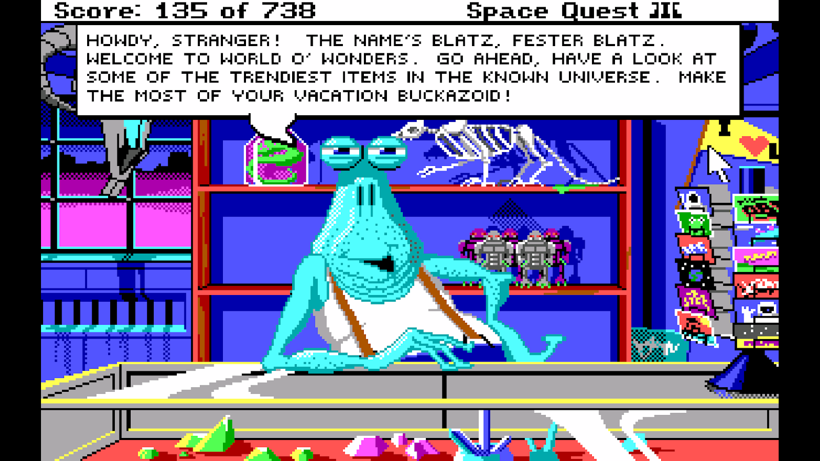 The only other comment I have is the text can be hard to read at times.. (Space Quest 3-style speech bubbles option dlc?)